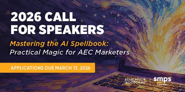 Every August, the SMPS Colorado Chapter Education Committee hosts a full-day bootcamp for marketers in AEC. It is an immersive, hands-on learning event for novice and experienced marketers alike. Our bootcamp includes four sessions, each including a presentation and workshop component connected to a common theme. You will also receive a total of six (6) Continuing Education Credits (CEUs) eligible for CPSM Recertification. Join our next bootcamp this August to advance your professional development.